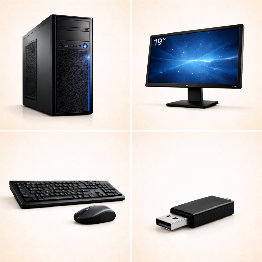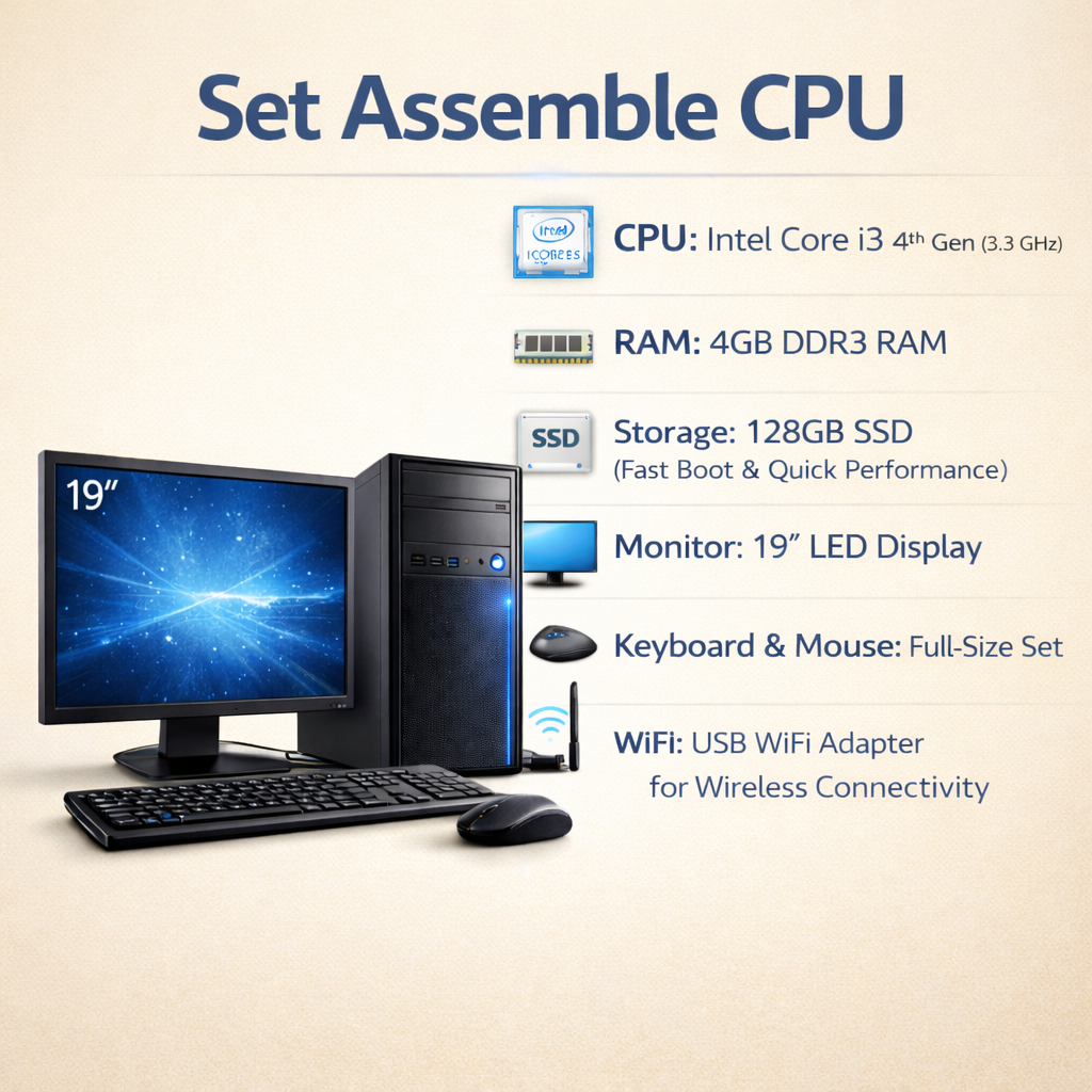 | Modal | Set Assemble CPU i34th-4gb-128/Monitor 19"/Key+Mouse/Wifi |